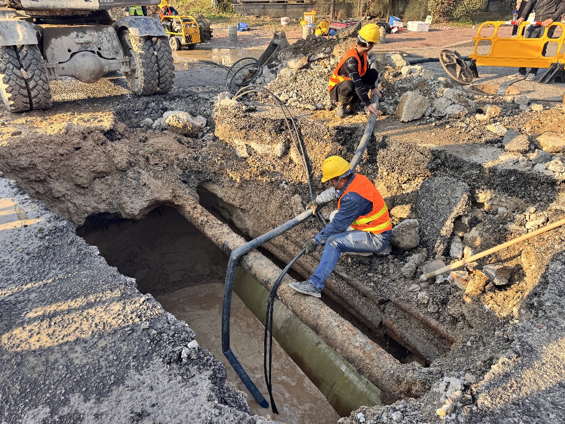 這次搶修難點重重,管道埋深大、尋找漏點耗時、抽排積水費時、周邊管線復(fù)雜制約機械使用、寒冷天氣影響修復(fù)材料固化……每一個難點,都被這支搶修隊伍用專業(yè)、經(jīng)驗和毅力一一攻克。