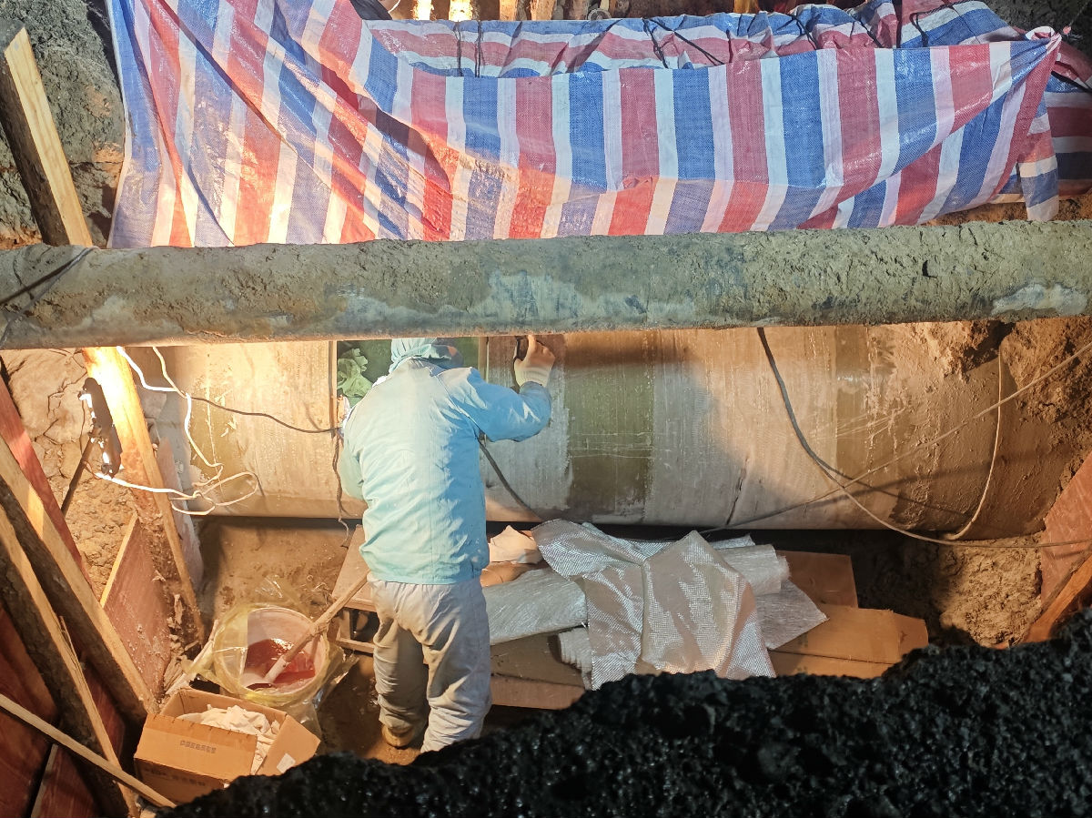 真正的挑戰(zhàn)才剛剛開始。修復(fù)必須進入管道內(nèi)部作業(yè),搶修人員在管道上方開出一個40×50厘米的“天窗”,將坑內(nèi)和管道中的積水抽干。然而,冬日的積水冰冷刺骨,抽干后,管壁仍然濕滑。