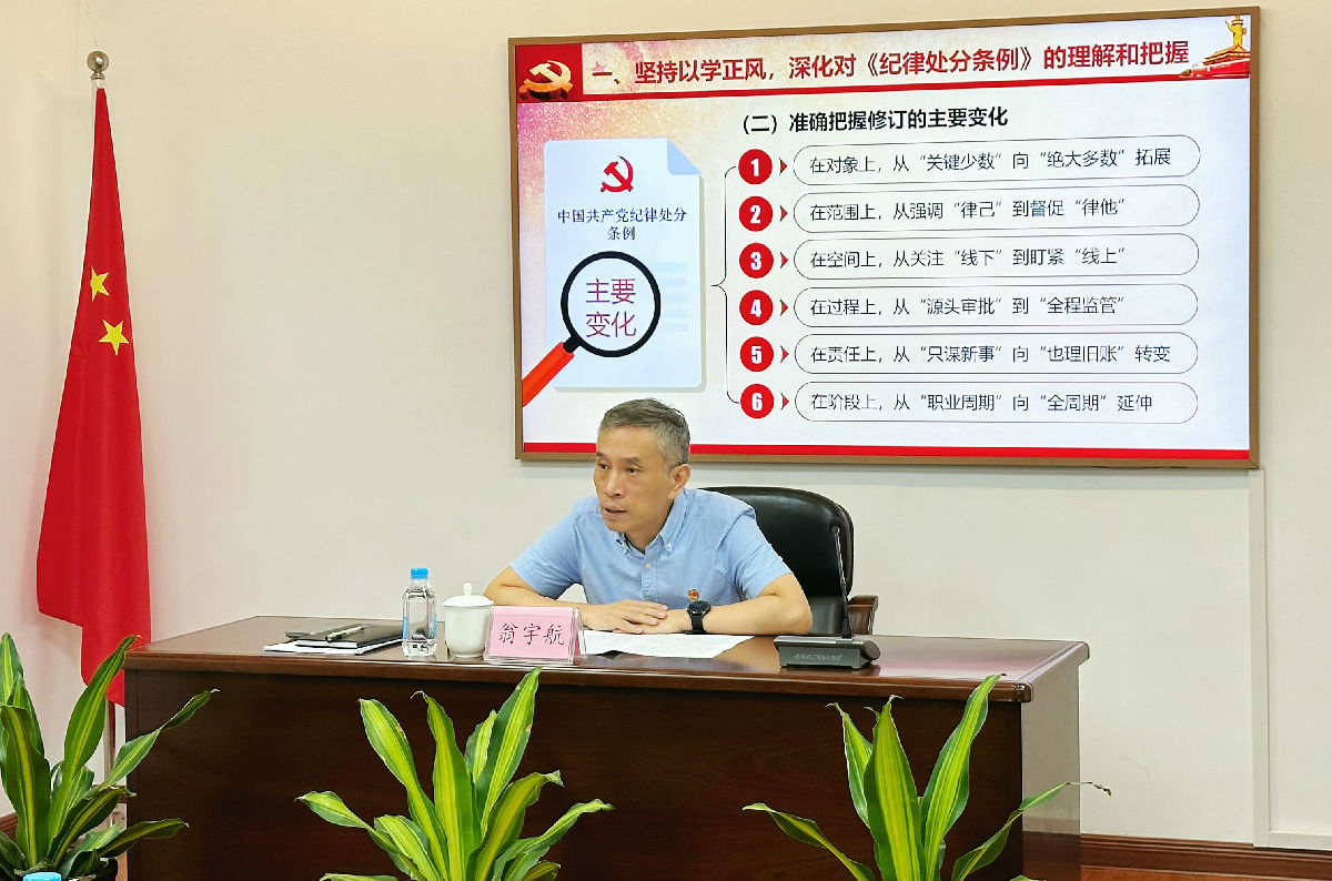 隨后,翁宇航以“堅持學(xué)紀(jì)知紀(jì)明紀(jì)守紀(jì) 以嚴(yán)明紀(jì)律推動企業(yè)高質(zhì)量發(fā)展”為題講授專題黨課。他強(qiáng)調(diào),閩電投資公司全體黨員干部要堅持以學(xué)正風(fēng),深化對《紀(jì)律處分條例》的理解和把握;要堅持以案為鑒,深刻汲取集團(tuán)系統(tǒng)違紀(jì)違法案件教訓(xùn);要堅持以學(xué)促干,以嚴(yán)明紀(jì)律護(hù)航企業(yè)高質(zhì)量發(fā)展。