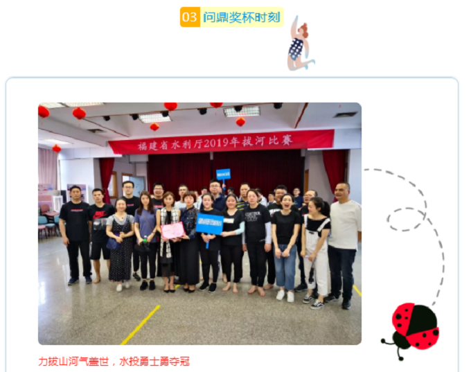 4月26日,集團公司參加水利廳直屬機關工會拔河比賽,經過三輪激烈的角逐,一路過關斬將,從15支參賽隊伍中脫穎而出,勇奪桂冠,這是集團公司連續(xù)五年蟬聯(lián)水利廳直屬機關工會拔河冠軍。