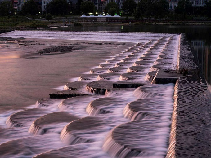 綠水工程1#壩是松溪水美城市PPP項(xiàng)目完工的首個(gè)節(jié)點(diǎn)工程,屬壅水壩,壩后形成綠水漪鏈的湖面,壩前則是獨(dú)具特色的魚鱗疊水景觀,成為湛盧明月下水美松溪的一道印記。